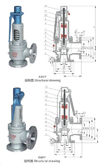 A44Y帶扳手彈簧全啟式安全閥適用于工作溫度≤300℃的空氣、石油等介質(zhì)的設(shè)備或管路上,作為超壓保護裝置。