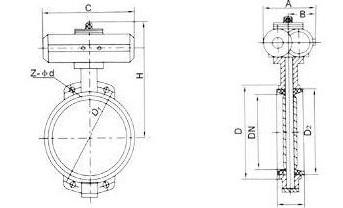 D671X氣動對夾式蝶閥采用新型系列GT型氣動執(zhí)行器,有雙作用式和單作用式(彈簧復(fù)位),齒輪傳動,安全可靠;大口徑閥門采用系列AW型氣動執(zhí)行器拔叉式傳動,結(jié)構(gòu)合理,輸出扭矩大。
