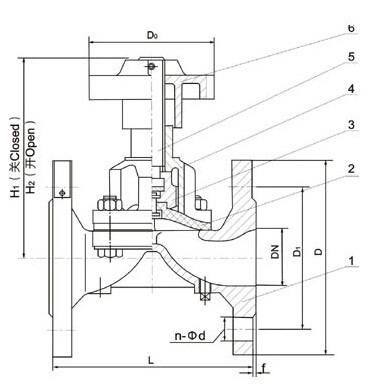 DN | 公稱壓力 | 工作壓力 | L | D | D1 | n-Фd | f | H1 | H2 | D0 | 質量 Kg |