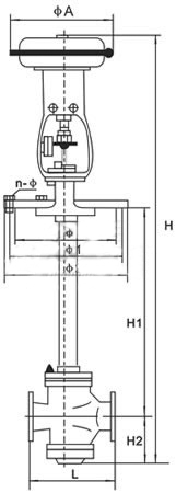 由調(diào)節(jié)器來的信號(hào)壓力輸入氣動(dòng)薄膜執(zhí)行機(jī)構(gòu)的氣室,產(chǎn)生推力,通過連接桿件帶動(dòng)閥芯,閥芯位置的變化使閥的流通截面積變化,實(shí)現(xiàn)對(duì)介質(zhì)流量的調(diào)節(jié)。